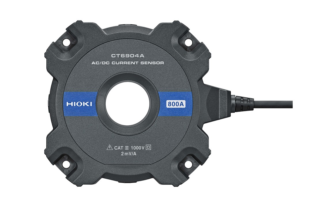額定800 A的閉口型傳感器具備高級別的頻帶DC ~ 4 MHz (CT6904A-3: DC ~ 2MHz)。與與功率分析儀PW8001組合,能夠準確的測量高頻·低功率因數(shù)的功率。