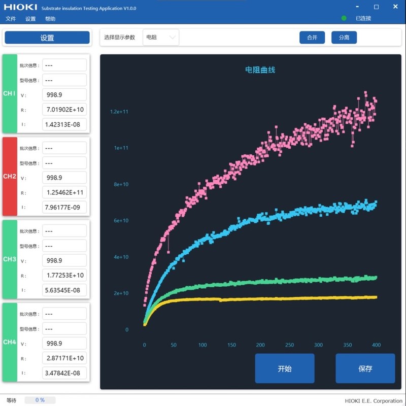 CN067 5通道絕緣檢測(cè)系統(tǒng) 概述● 最大5ch● 測(cè)試值實(shí)時(shí)顯示● 原始數(shù)據(jù)圖表保存● 上下閾值顯示*必須與SM7120+SM7420組合配套使用。(SM7120可替換為SM7110)接線方式SM7120 + SM7420 + CN054 Branch BOX 接線方式。 絕緣電阻測(cè)試可實(shí)時(shí)顯示當(dāng)前測(cè)試結(jié)果并繪制趨勢(shì)圖