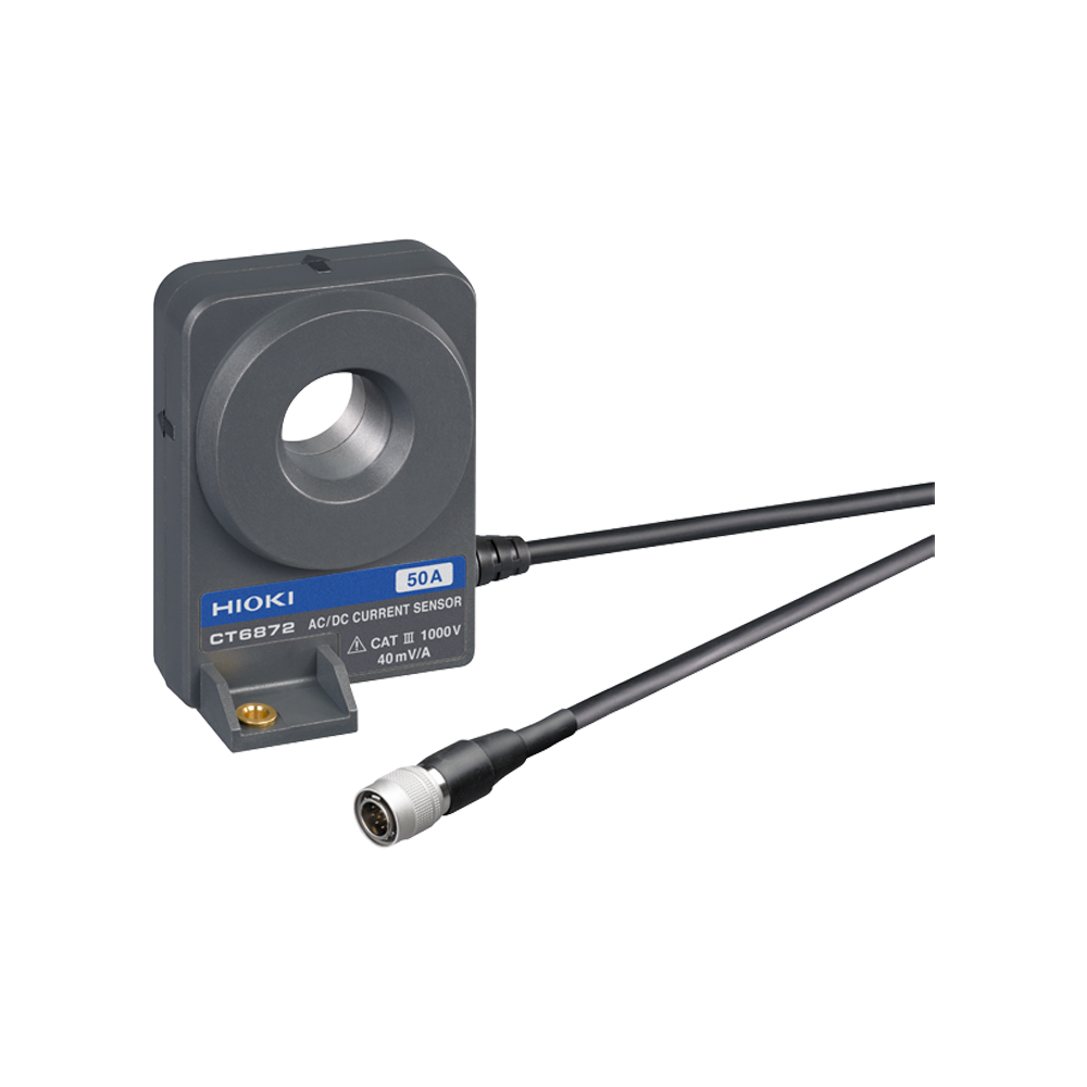 額定50 A的閉口型傳感器具備高級(jí)別的頻帶DC ~ 10 MHz。與功率分析儀PW8001組合,能夠準(zhǔn)確的測(cè)量高頻·低功率因數(shù)的功率。