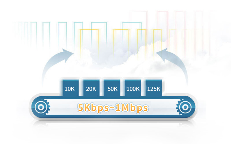CAN波特率可編程任意設(shè)置,范圍在5Kbps~1Mbps之間