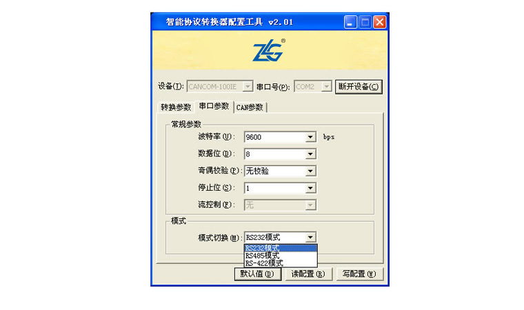 串口參數(shù):配置串口波特率等參數(shù)、轉(zhuǎn)換模式(RS232/485/422)