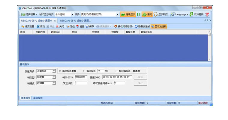 2.啟動后自動接收,基本操作滿足單幀發(fā)送,可設置連續(xù)保存滿足長時間測試要求