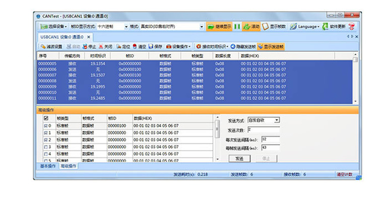 3.高級(jí)操作可預(yù)定義100幀,并且可設(shè)置發(fā)送次數(shù)與間隔