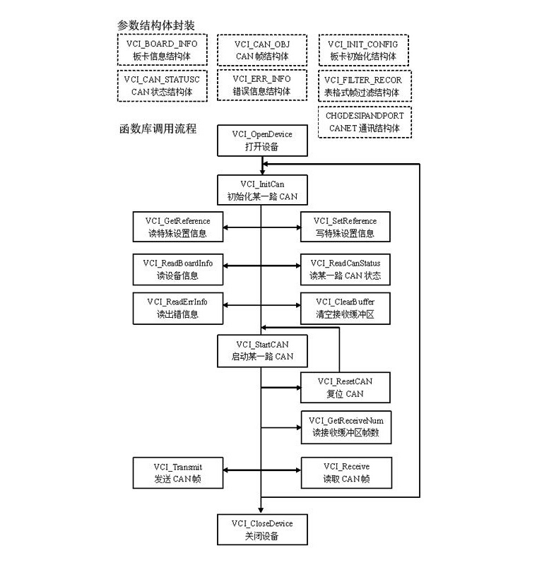 致遠(yuǎn)電子所有的CAN接口卡均使用同一套上位機(jī)二次開發(fā)函數(shù)庫(kù)(支持VC、VB、C#、LINUX、Labview、LabWindows、Delphi7等主流開發(fā)環(huán)境),用戶只需修改設(shè)備類型即可實(shí)現(xiàn)不同接口的無(wú)縫切換: