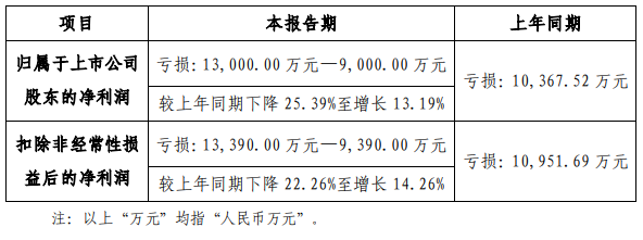3.預(yù)計(jì) 2023 年年度歸屬于母公司所有者的扣除非經(jīng)常性損益后的凈利潤(rùn)-11,100 萬(wàn)元到-9,500 萬(wàn)元。