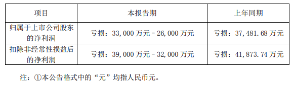 2、歸屬于母公司所有者的扣除非經(jīng)常性損益的凈利潤(rùn)-76,800.00萬(wàn)元到64,600.00萬(wàn)元。