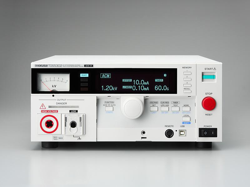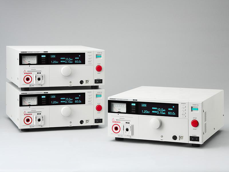 「TOS5300系列」是對(duì)電器產(chǎn)品必須進(jìn)行安全確保4項(xiàng)測(cè)試中的耐電壓測(cè)試,絕緣阻抗測(cè)試的測(cè)試儀器。輸出為5kV/100mA(AC),6kV/10mA(DC),基于在IEC,EN,UL,VDE,JIS等各國(guó)安全規(guī)定或電器產(chǎn)品安全法的要求之上,可對(duì)電子器械,電子部品進(jìn)行耐電壓/絕緣阻抗測(cè)試。還有,采用了最新研發(fā)的開(kāi)關(guān)放大器,使測(cè)試電壓的安定性更高。因?yàn)椴皇蹵C輸入端電壓和頻率變化的影響,可保持安定的輸出電壓,所以在電源環(huán)境不安定的區(qū)域也可進(jìn)行安定,安心的測(cè)試。 裝備有充實(shí)的對(duì)應(yīng)各式各樣用戶要求的機(jī)能。這是一款基于操作性·實(shí)用性·安全性·低價(jià)格為一體,性價(jià)比高的新機(jī)種。