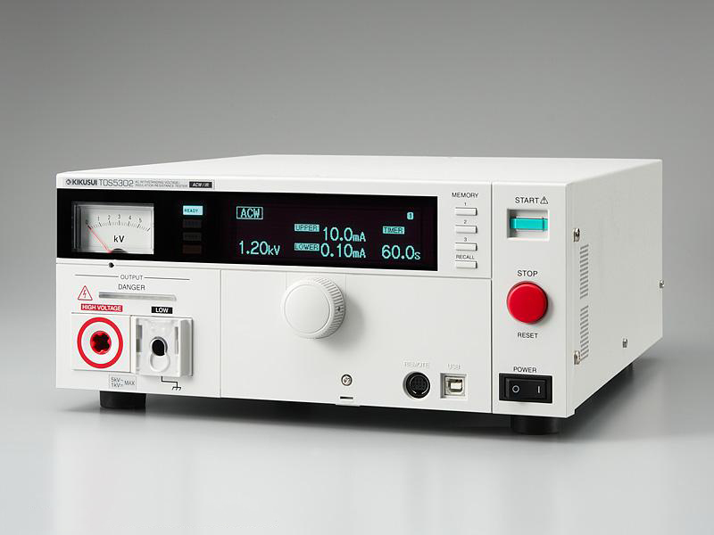 TOS5300系列耐電壓絕緣阻抗測(cè)試儀實(shí)現(xiàn)高穩(wěn)定輸出的PWM放大器方式5kV/100mA(500VA)的交流耐電壓測(cè)試6kV/最大輸出50W的直流耐電壓測(cè)試儀(TOS5301)25V~1000V(7檔位)、500V以上,最大達(dá)5.00GO的絕緣電阻測(cè)試±1.5%。freading的高精度測(cè)量(電壓表500V以上、電流表1mA以上時(shí))上升時(shí)間/下降時(shí)間控