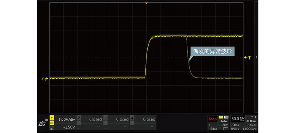 由于波形合成器的實時處理能力和波形顯存的吞吐帶寬的技術限制,2000系列示波器的波形刷新率一般很低,波形觀測存在大量的死區(qū)時間,用戶也會因此錯過了許多波形細節(jié),大大降低了工作效率。ZDS3000/2000B系列示波器研發(fā)團隊采用大規(guī)模FPGA,突破各個技術難點,每一行代碼都嘗試不同的實現(xiàn)方式,以尋求較佳效果。從剛開始的75K到150K、260K至最終的330K,不斷地突破自我、精益求精。更高的波形刷新率能夠讓用戶快速發(fā)現(xiàn)異常信號,大幅提高工作效率。