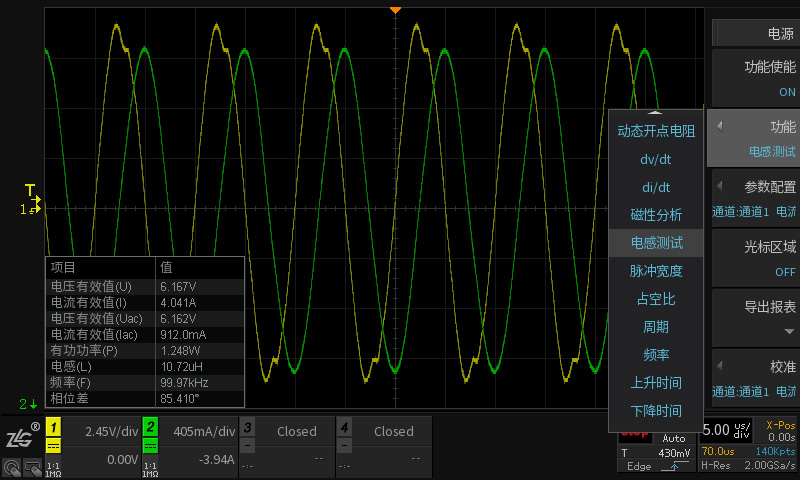 開關電源的質量直接影響到產(chǎn)品的技術性能以及其安全性和可靠性。電源測試項目多,計算量大,統(tǒng)計繁瑣等問題一直困擾著工程師們,為了解決這些問題,致遠電子在示波器中增加開關損耗、SOA、電感測試等電源分析功能。如在電感測試功能中可直接對電感、有功功率等項目進行計算,方便工程師快速、準確地測試電源產(chǎn)品。