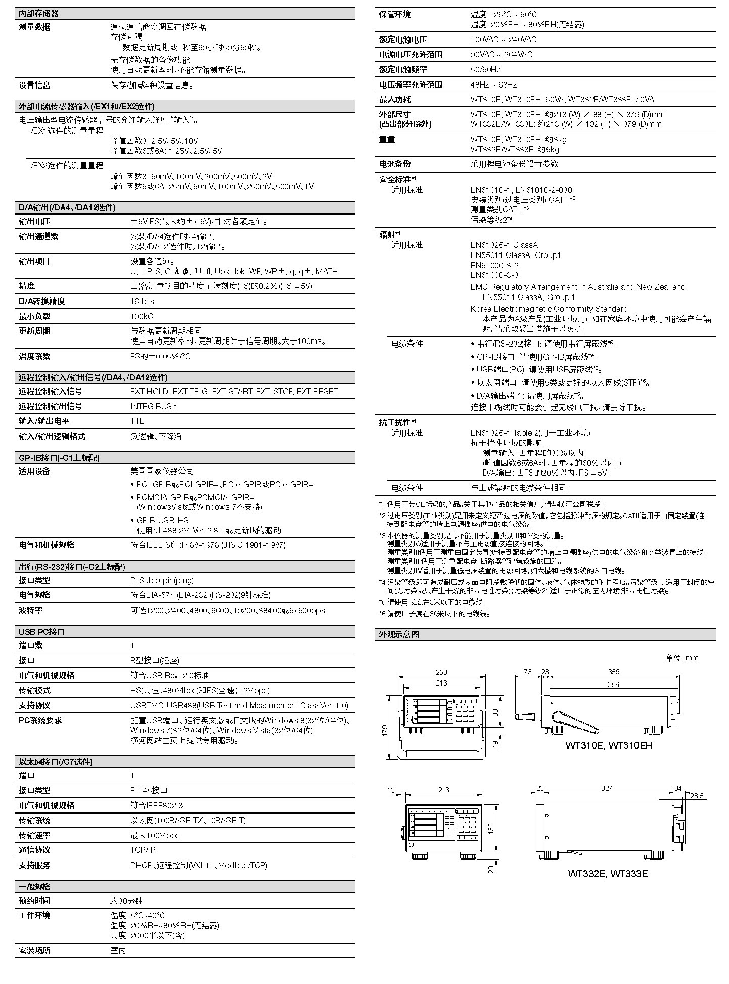 WT300E系列 | WT300系列 | WT210/WT230 | ||