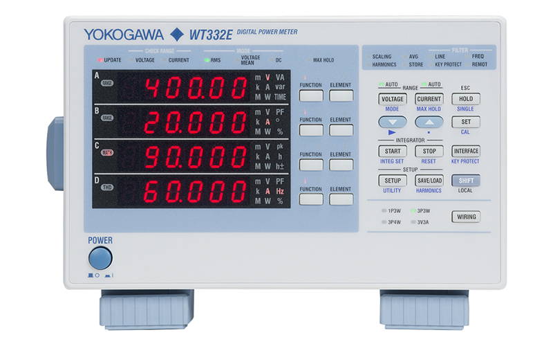直接輸入: 最大直接輸入值 600V 和 20A, 或者 40A (WT310EH). WT310E系列的寬電流量程,可以滿足客戶低至50 micro-Amps高至40Arms (WT310EH)的電流測量需求。