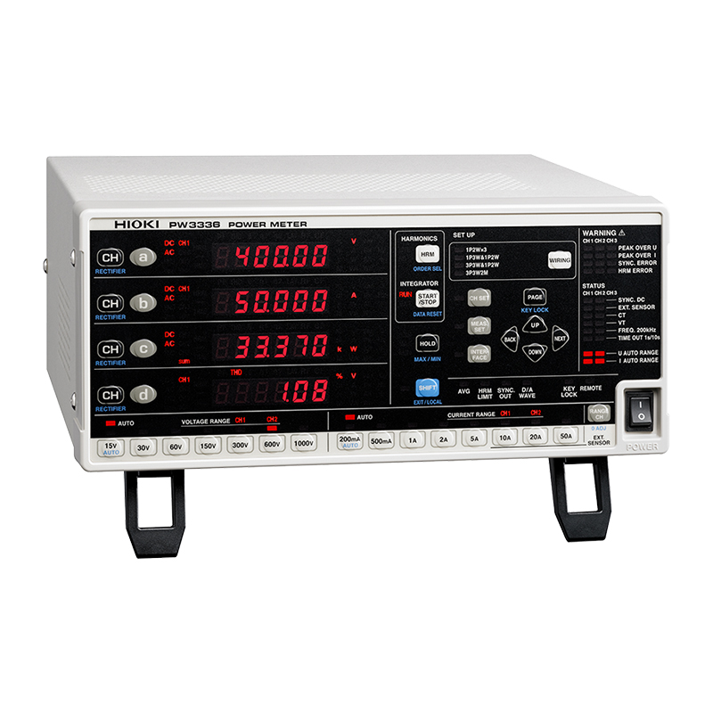 直接輸入的方式準(zhǔn)確測(cè)量最大AC/DC 1000V/65A的儀器● 支持支持2ch輸入,DC、可測(cè)單相2線~三相3線● 用于馬達(dá)、變頻器、功率調(diào)節(jié)器、電源等的開發(fā)和生產(chǎn)● 高基本精度:±0.15%● 寬頻帶:DC,0.1Hz~100kHz● 直接輸入方式下最大可測(cè)65A的大電流● 標(biāo)配諧波測(cè)量:符合IEC61000-4-7● 變壓器/馬達(dá)的無負(fù)載試驗(yàn)