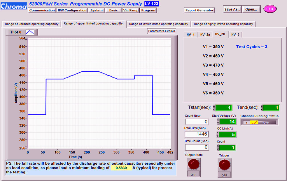 除了整合國際ISO 16750-2及車廠GS 95024-2-1及VW 80000標準外,還納入LV 123于此汽車環(huán)境電力負載試驗軟件,LV 123為歐系各大車廠編訂于新能源汽車的電氣特性測試,針對其高壓系統(tǒng)零件,定義其操作電壓范圍內(nèi)的狀態(tài)標準,此圖形化人機接口軟件可簡易聯(lián)機控制直流電源供應(yīng)器提供圖形化測試曲線進行測試,此非常適合研發(fā)及品保單位對 LED頭燈、車用音響、GPS、高壓電池系統(tǒng)、逆變器、DC/DC高低壓轉(zhuǎn)換器、車載充電器...等車用電子產(chǎn)品做長時間性能及穩(wěn)定性驗證。
