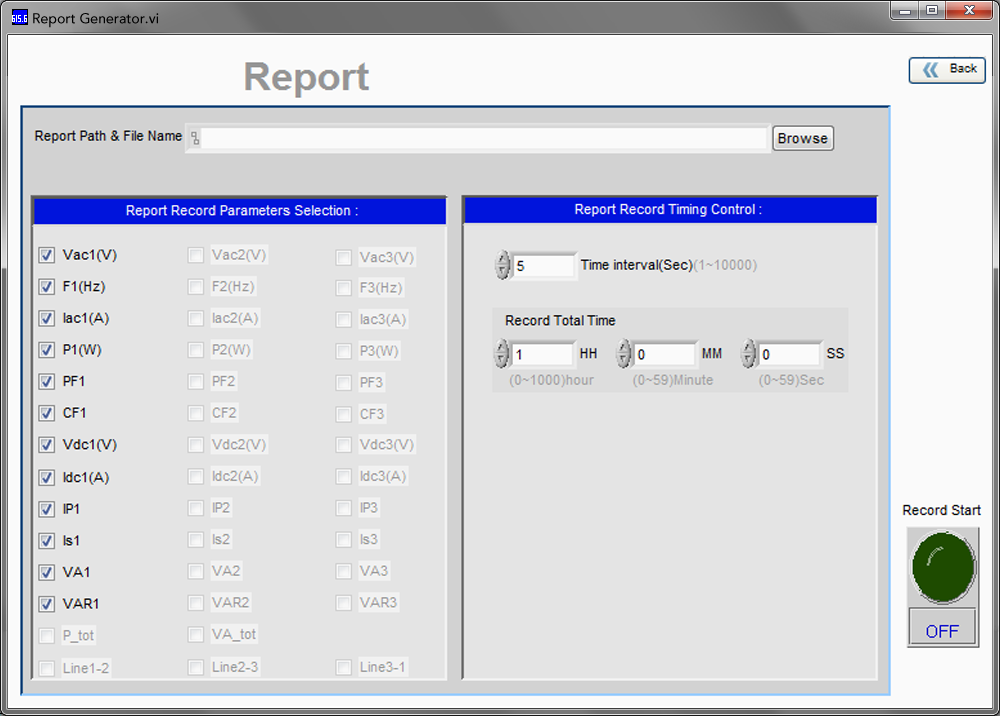 此外亦提供Report Generator報表功能,可自動記錄使用者選定的參數(shù)、取樣率及記錄時間等。