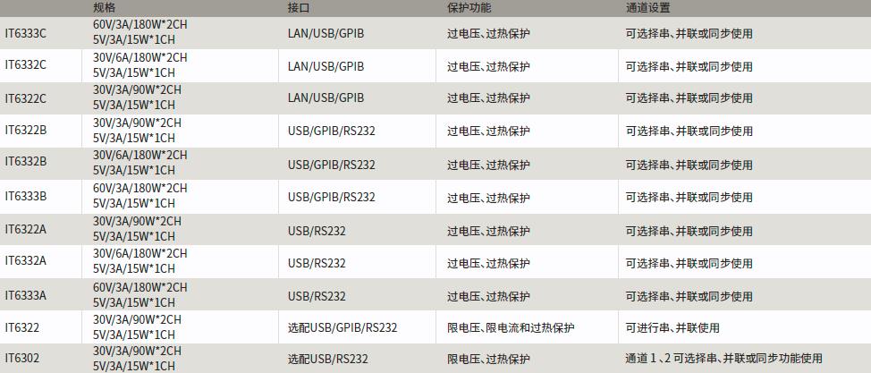 IT6300系列為高性能的可編程三路直流電源,每路輸出電壓和電流均可設(shè)定為從0到最大額定輸出值。該系列提供了通道的串聯(lián)、并聯(lián)以及同步功能,可以給客戶的測(cè)試帶來多用途的解決方案。該系列具有1mV/1mA的高分辨率,具有高精度以及高穩(wěn)定性的特征,并且配備了遠(yuǎn)端測(cè)量的功能,可以使測(cè)試更加準(zhǔn)確。內(nèi)置的標(biāo)準(zhǔn)的USB /RS232 通訊接口,大大提升了通訊速度,并且客戶還可以利用光標(biāo)調(diào)節(jié)數(shù)字步進(jìn)值來方便操作。