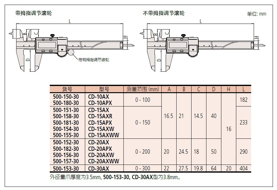 500-155-30 | CD-15AXWW | 0~150 | ±0.02 | 162 | 有 | 有 | |